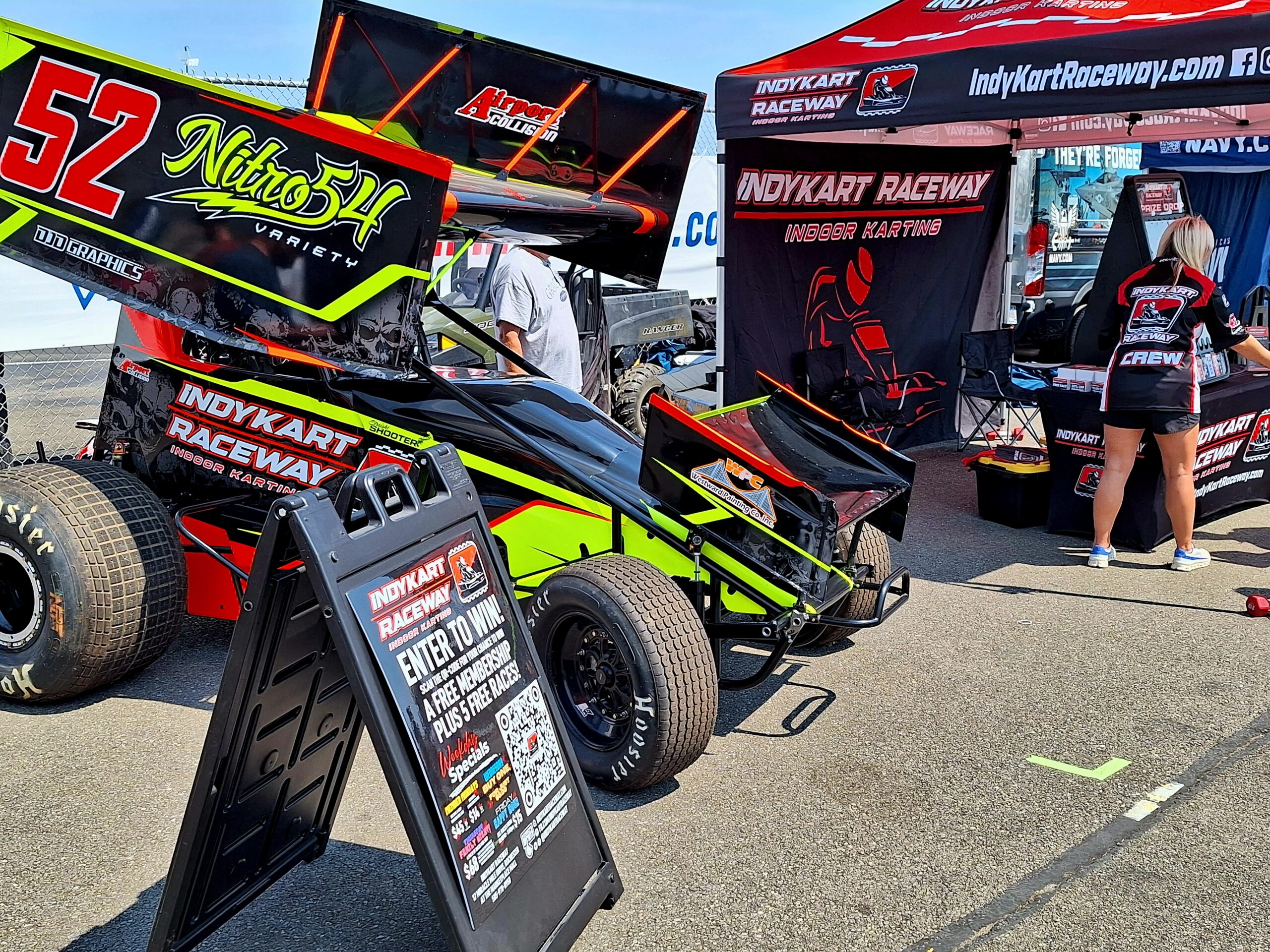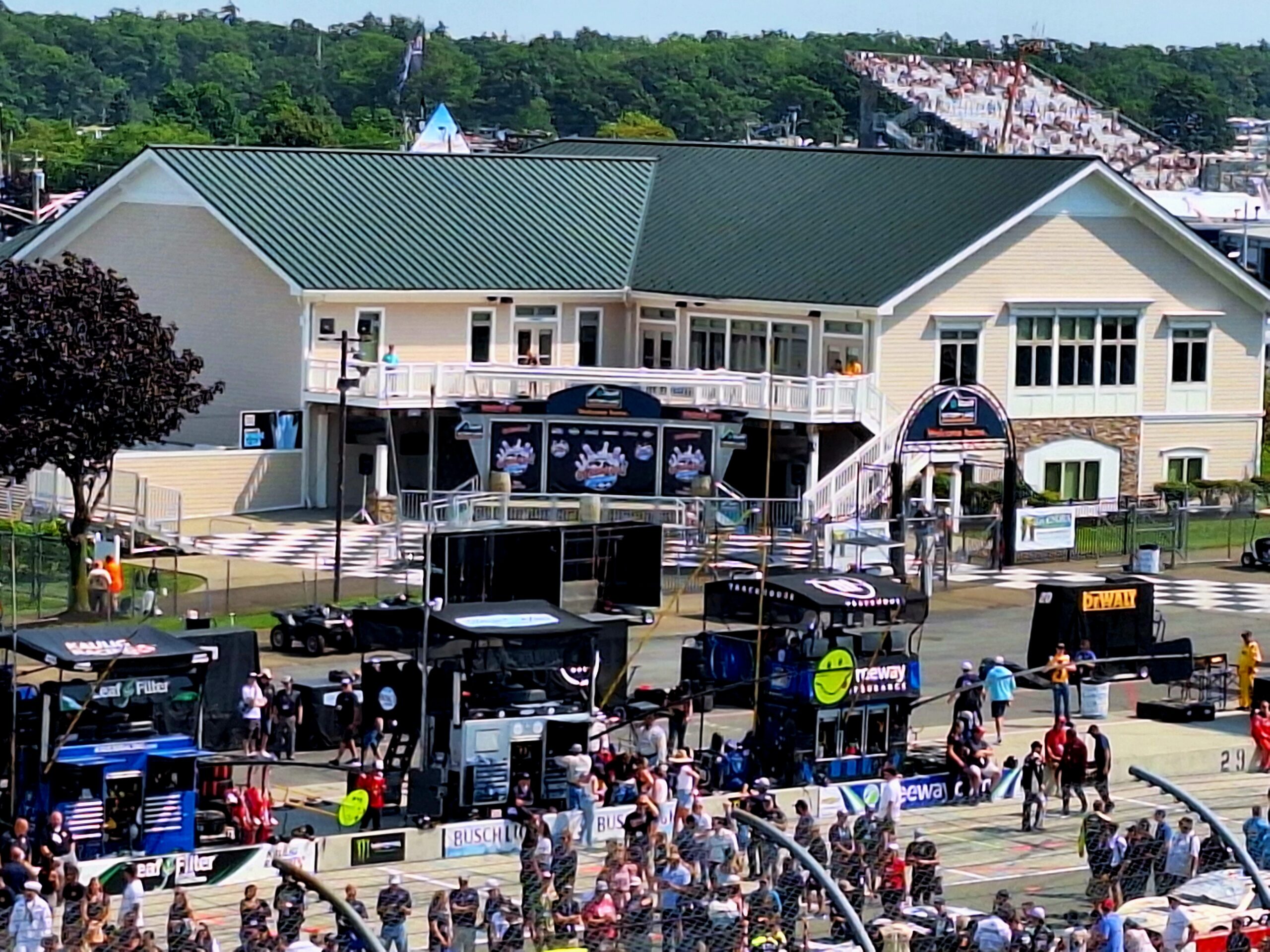 Time can slip by very quickly with such a crowd, so after shopping the various trailers and touring the midway…it is suddenly 1 in the afternoon (with the green flag dropping around 3:30pm). So we head back over the bridge from the midway to the grandstand area for lunch…shoutout to Brick Oven Pizza for some great chicken strips (prices again are what one would expect for everything). There are also quite a few food vendors on the mid-way itself, but it’s nice to get away from the full crowd a bit.