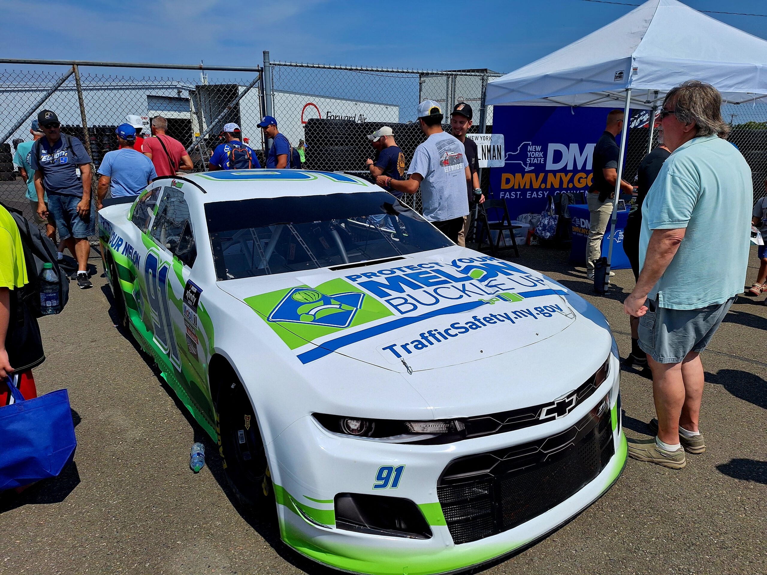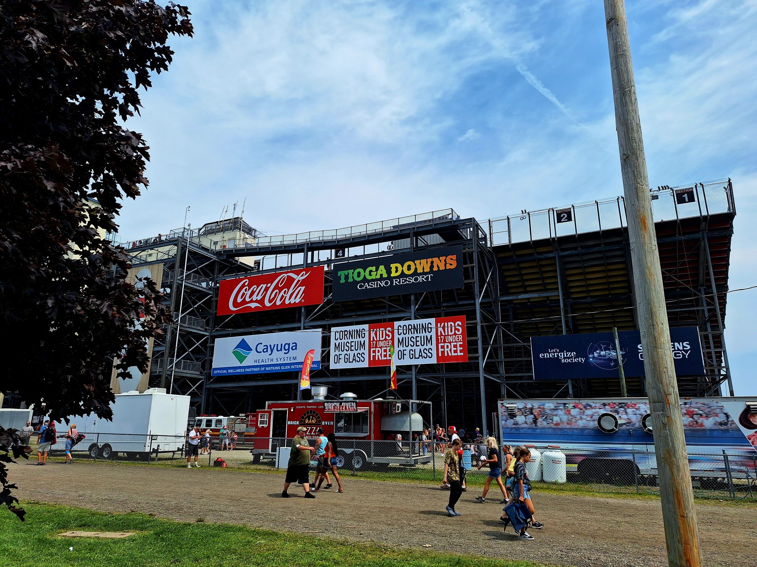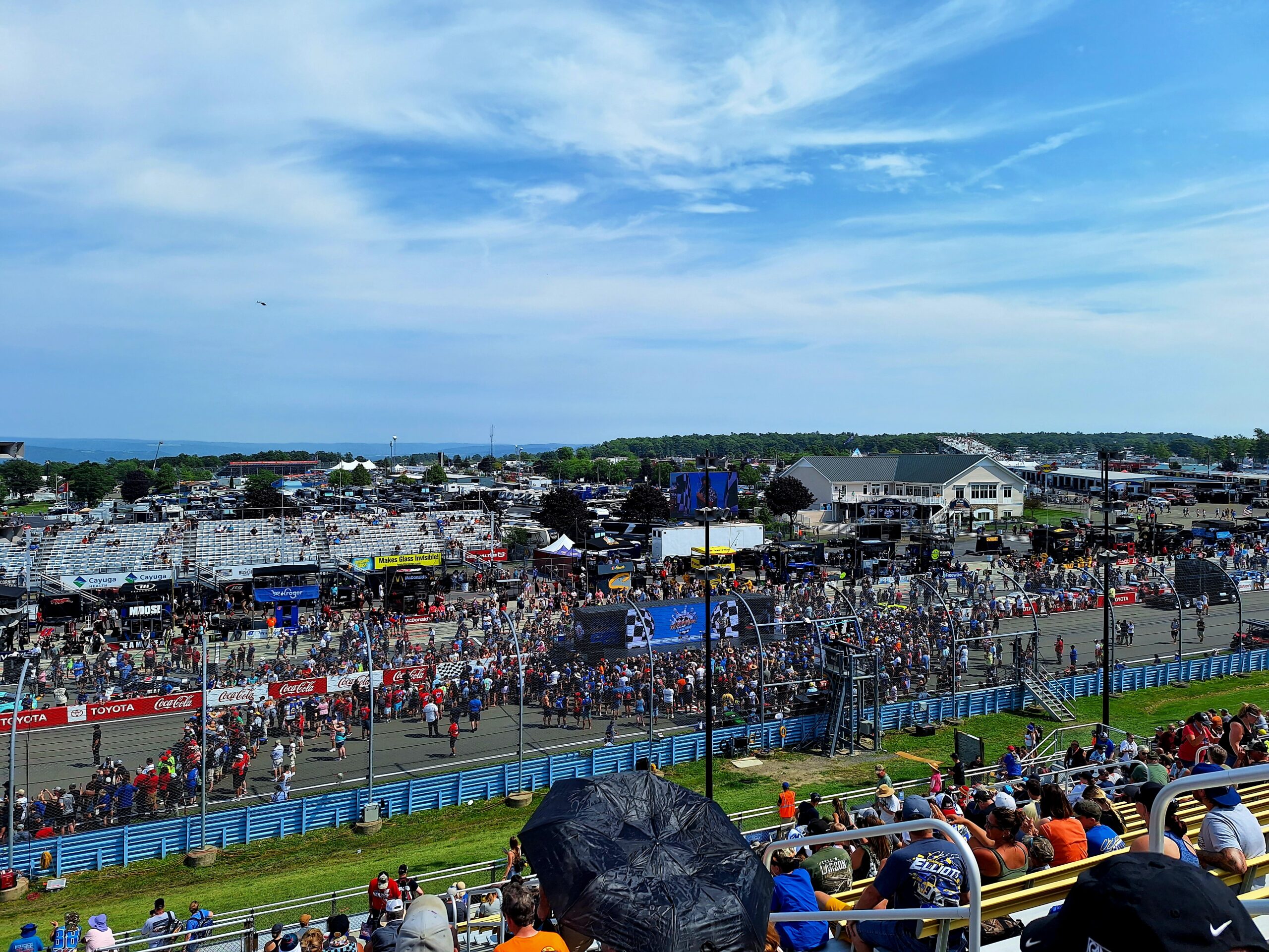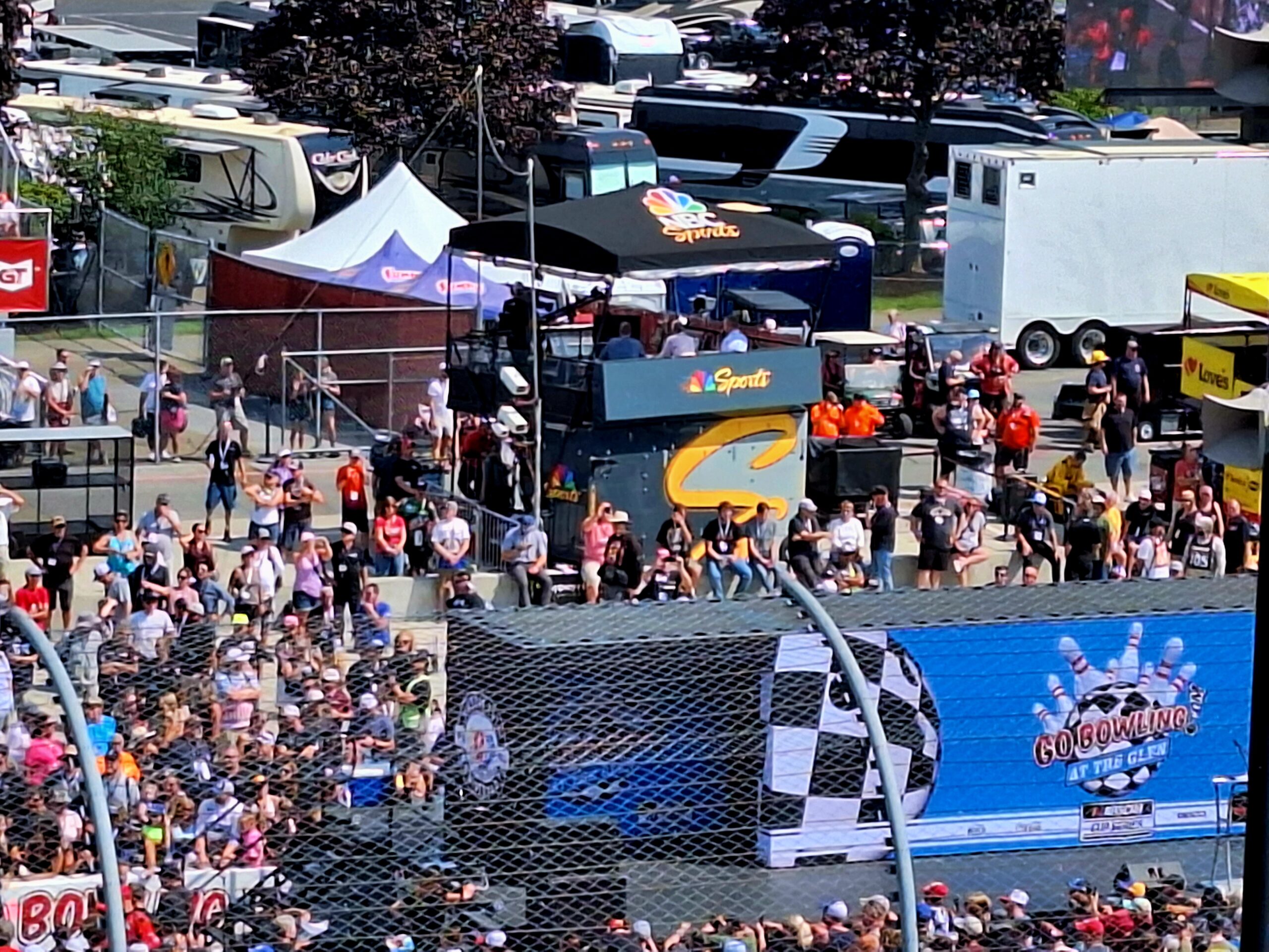 We leave around 7:30am that morning from our pickup spot, head to another about 20 miles away to pickup the other half of our tour group…then it’s off to a three hour trip to the Finger Lakes region of New York where Watkins Glen International Raceway is located. We arrive around 11:30am/Noon, and have until race time to experience the merch trailers, sponsor tents, food etcetera.