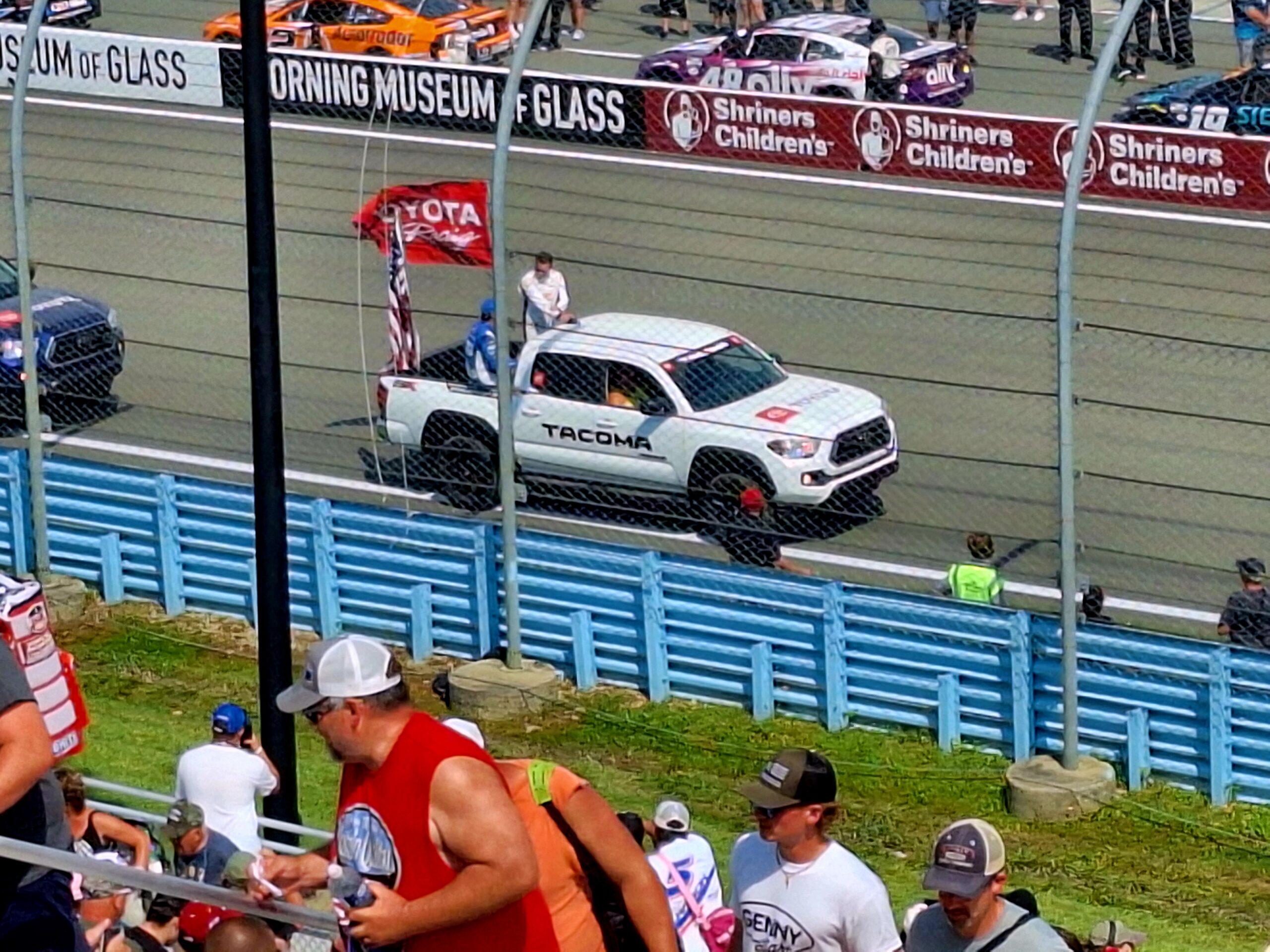 The best place to eat for me personally is right under the grandstands, where there are many picnic tables and other places to sit down and enjoy some food and shade. Around 2:30pm, we head to our front stretch seats, which is a decent climb to row 26 this year.