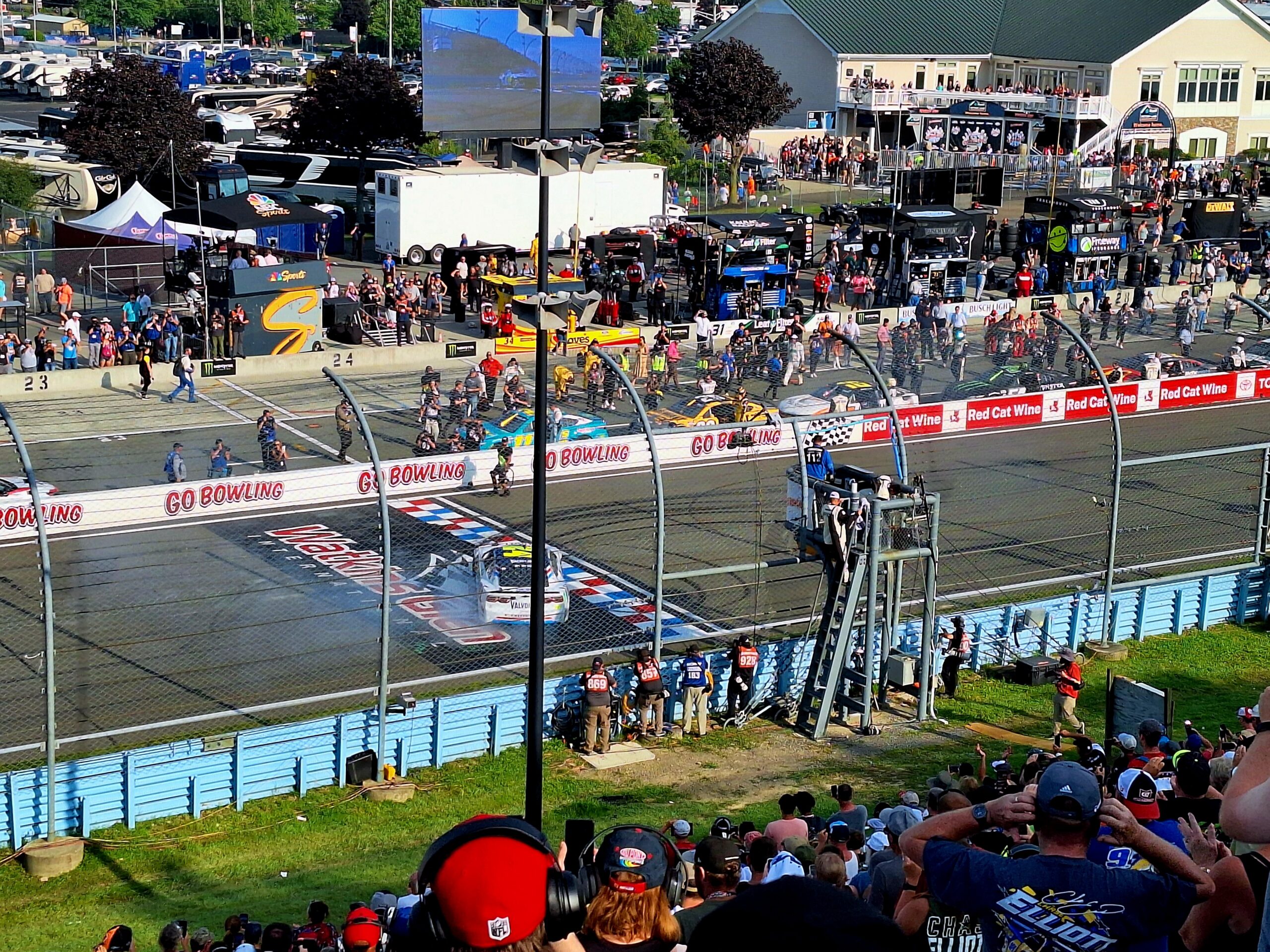 The front stretch seats are some of the best, because you can see all the action on pit lane, which TV does not always catch, so seats here are quite worth it. The bus stop seats also seem to be some of the best action-wise. What you do also get to see from our seats is the winner’s celebration on the front stretch…although William Byron decided to burn outs everywhere but there this year.