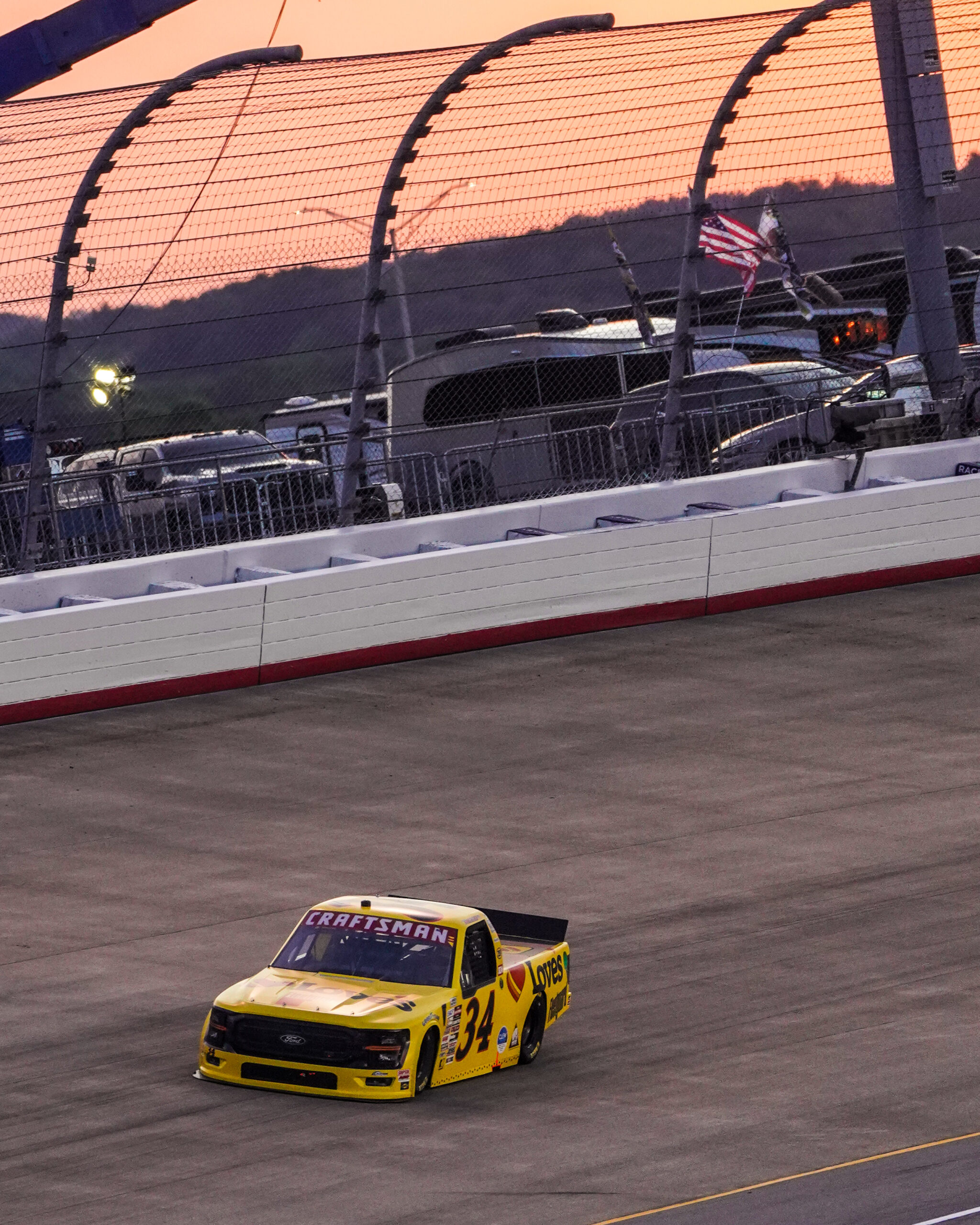 Caruth and Heim brought the field back to green. Heim got the better launch with Riggs pushing him. Heim was able to reclaim his lead out of turn two, and Caruth settled in behind him. He pulled away as he built his lead to just under a second. Caruth would not let Heim pull away by more than that. Riggs was the fastest truck on track as he closed the gap to second.