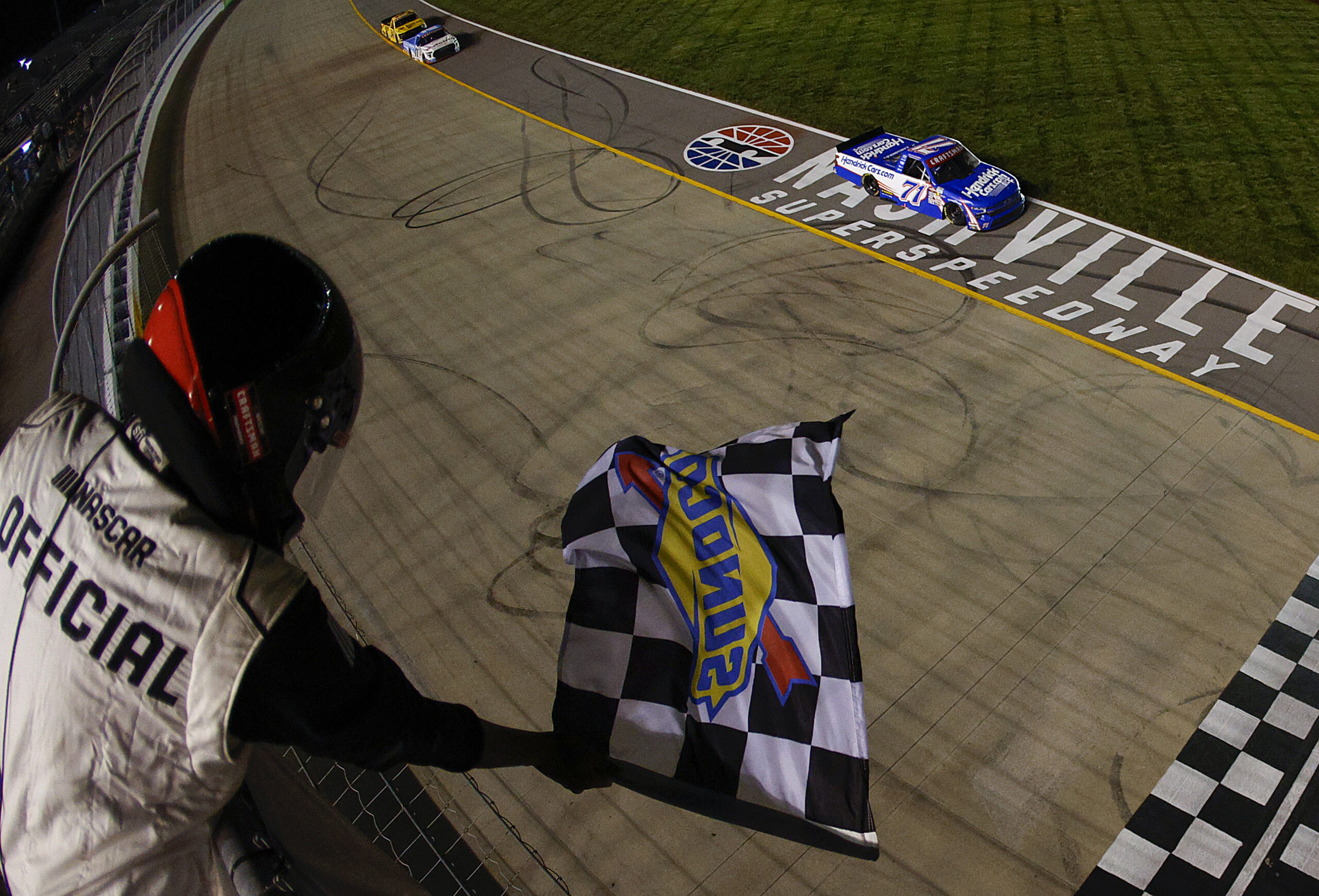 Rajah Caruth has had speed off and on, but he did not have the fastest truck and will leave Nashville with a new guitar. He earned that win after fighting off the fastest two drivers all season in Corey Heim and Layne Riggs. They made him earn it, and boy, did he. Rajah is a popular driver, and it was evident when he climbed out of his truck as the crowd erupted. What a great drive by Rajah Caruth!
