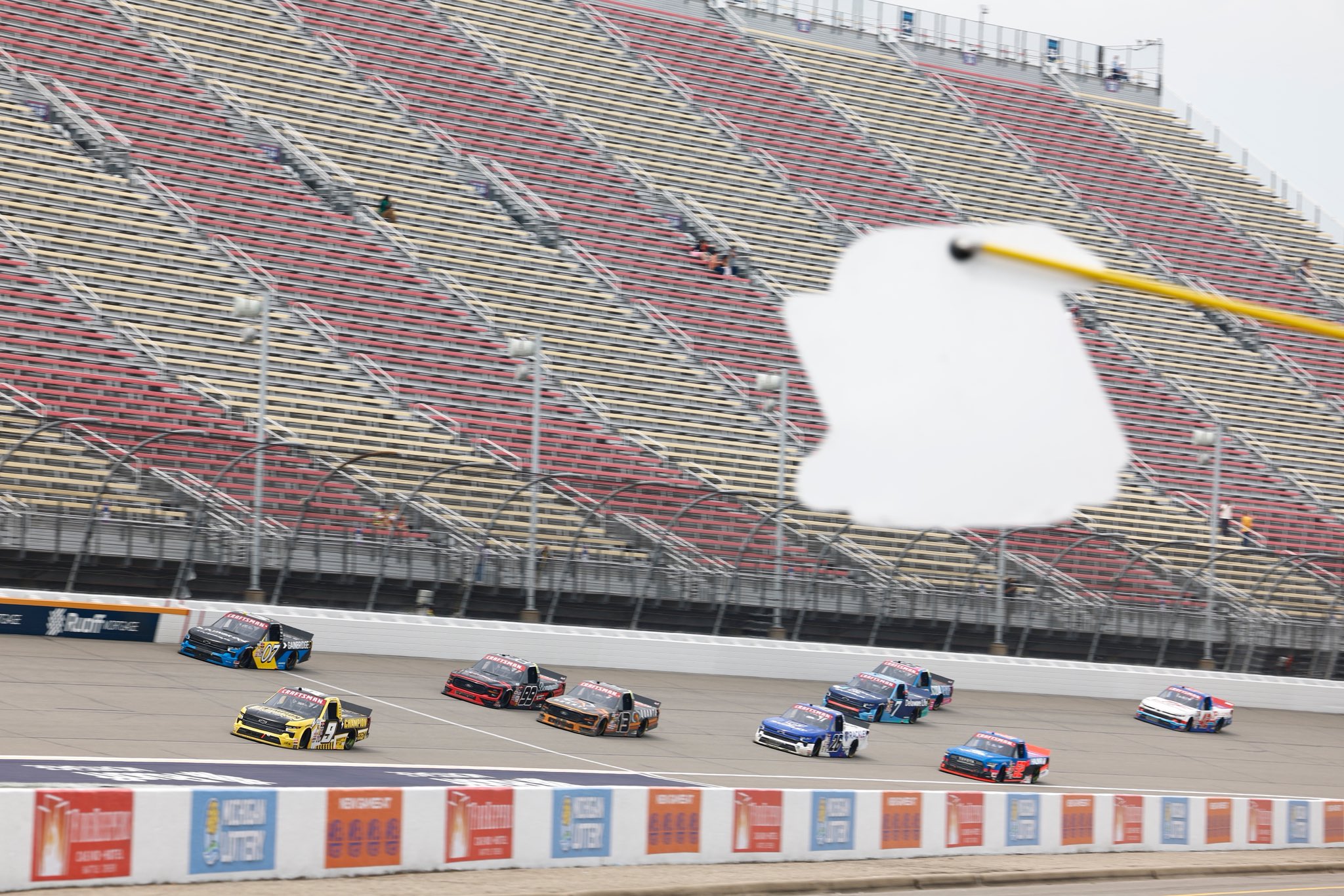 Enfinger made it through and restarted P8 for NASCAR Overtime – the first truck on tires.