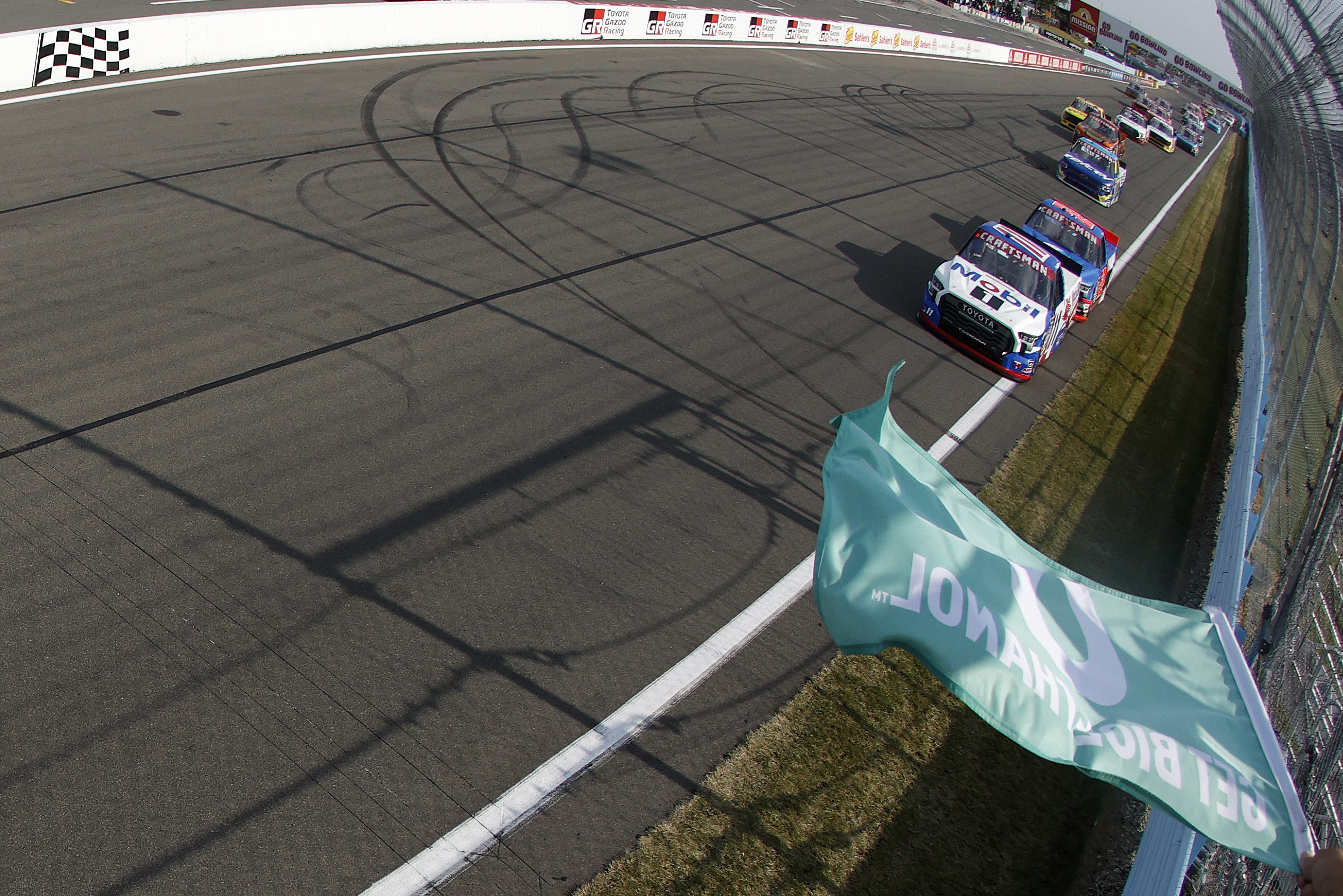 William Sawalich was the first truck out of the pits. Tanner Gray and Connor Mosack followed him out.