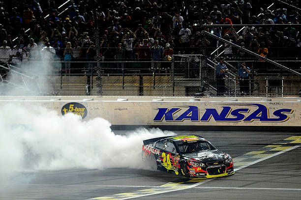 This 2002 win was the 2nd of Jeff Gordon’s 2 straight Wins in the table above as he won the first two Cup races ever held here at Kansas. Photo by Sporting News via Getty Images via Getty Images