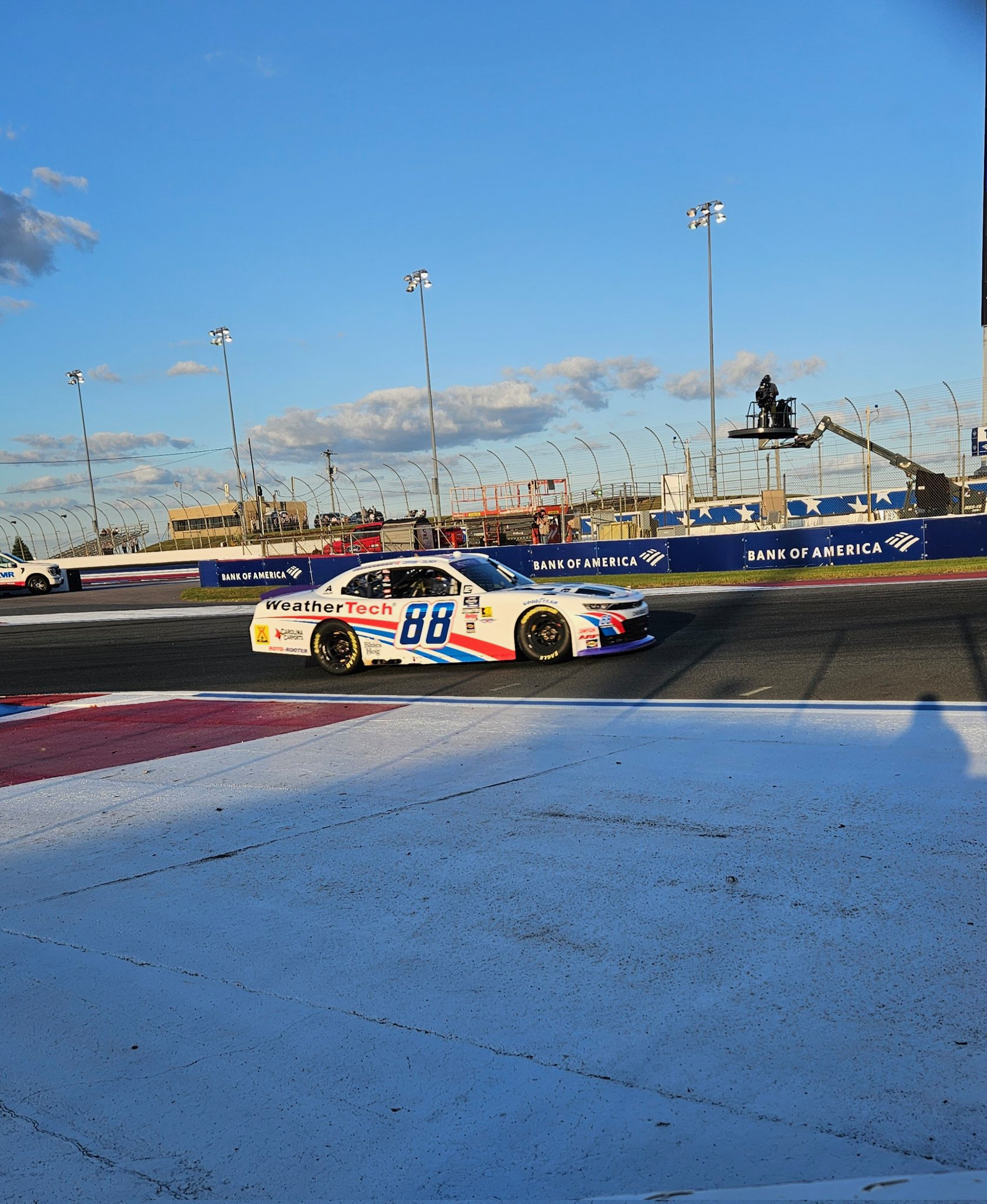 Josh Williams stopped his car before turn five. That brought out the third caution of the evening.