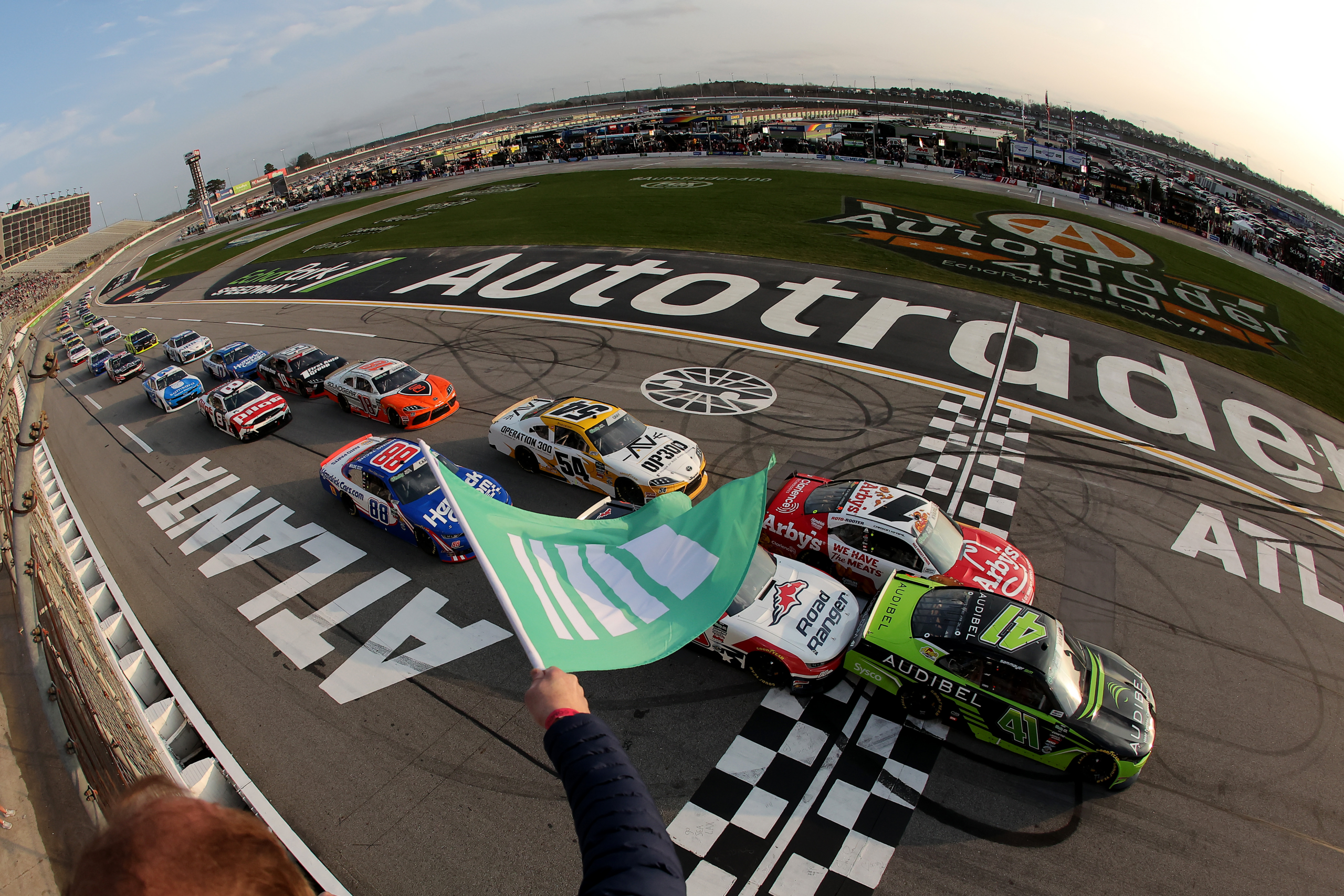 Sam Mayer and Carson Kvapil take the green flag in the Bennett Transportation & Logistics 250! (Photo Credit: Jonathan Bachman | Getty Images)
